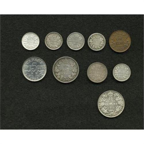 <B>Assortment of Mixed Minors,</B></I> a nice group of useful coins including: Cent 1922; 5 Cents 1858, 1884, very scarce, 1894, 1899, 1900 large date & round 0's, 1922; 10 Cents 1858; 20 Cents 1858; and 25 Cents 1935. Grades range from VG to UNC. <B>Sold as is, no return lot.</B></I><BR><BR><b>Shipping:</b> Coins & Currency (<a target="_blank" href="http://www.heritageauctions.com/common/shipping.php">view shipping information</a>)