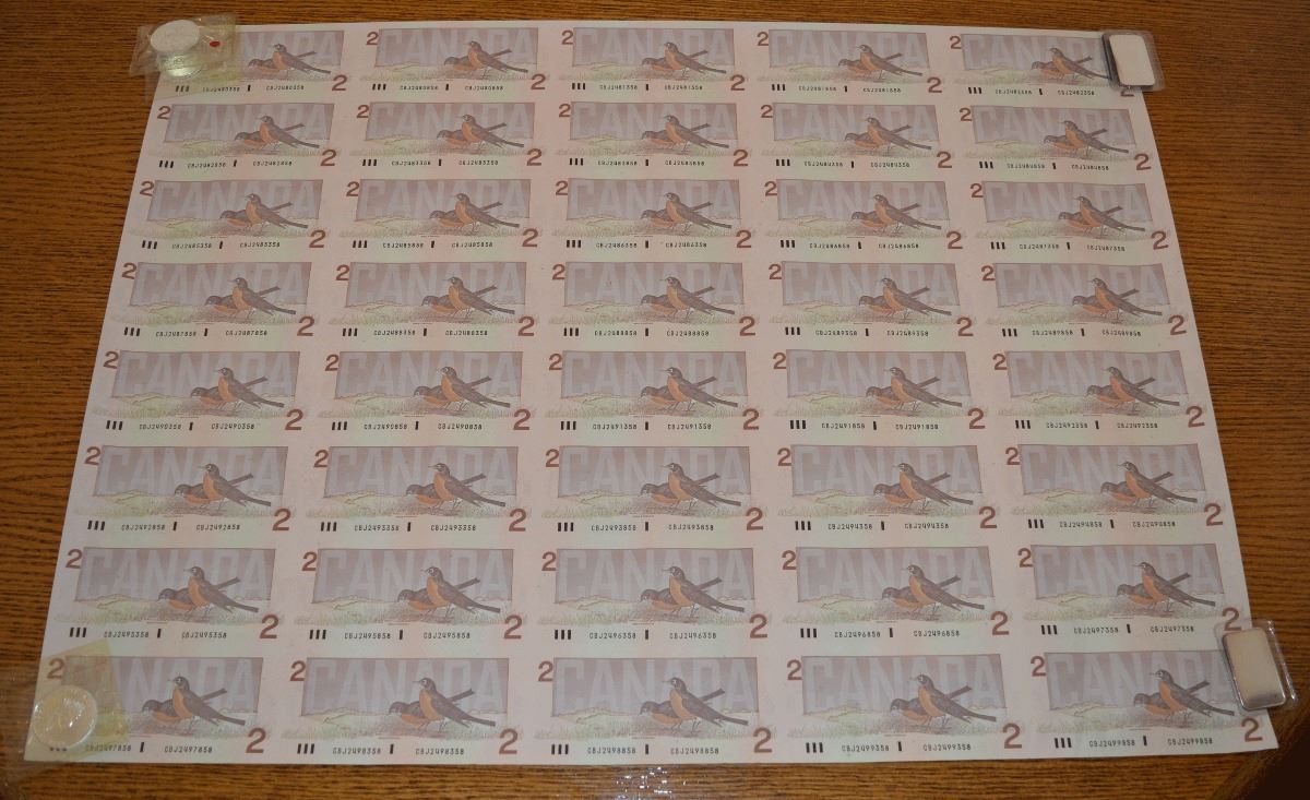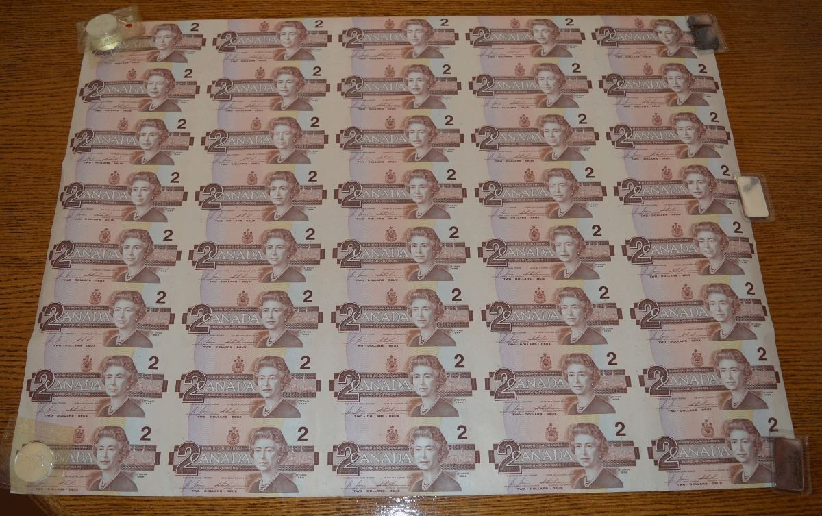 Canada Banknote Sheet $2 1988
