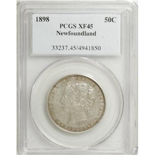 <B>Newfoundland Victoria 50 Cents 1898,</B></I> KM6, XF45 PCGS, lightly toned with scattered tiny contact marks.<BR><BR><b>Shipping:</b> Coins & Currency (<a target="_blank" href="http://www.heritageauctions.com/common/shipping.php">view shipping information</a>)