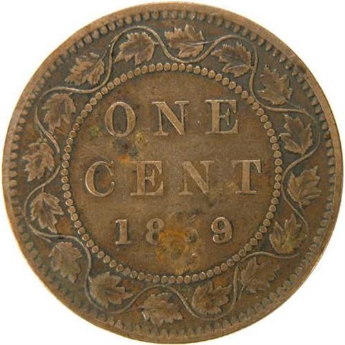 Canada Cent 1859 Wide 9 Over 8, VF-EF