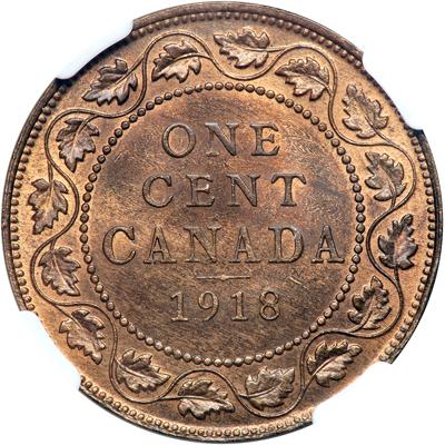 Canada. Cent, 1918. KM-21. George V. In a new NGC 4 prong holder. NGC graded MS-65 Red & Brown.