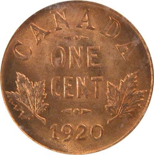 Canada Small Cent 1920 ICG MS-64 Red. About 85% red