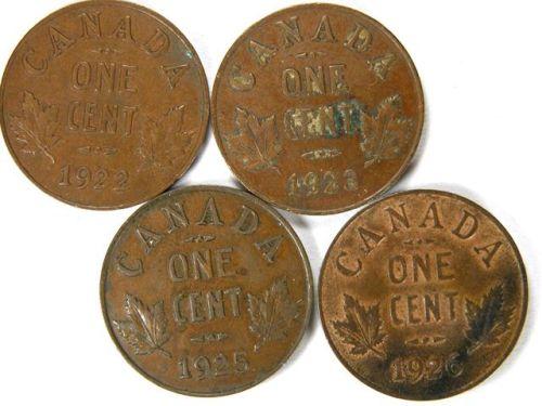 Canada Cent 1922 1923 1925 1926, VF-EF