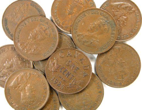 Canada Small Cent 1922, 1924, 1925, 1926 three pieces, 1927, 1929, 1930 three pieces and 1931. Total twelve pieces, all VF-EF or better