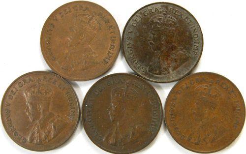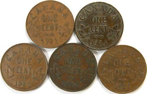 Canada Small Cent 1923, 1924, 1925, 1926 and 1927. Five pieces, all EF or better
