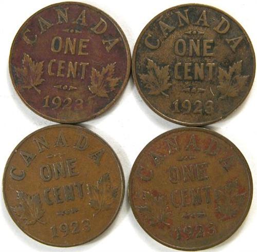 Canada Small Cent 1923 Four pieces, F or better