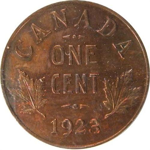 Canada Cent 1923 ICCS SP-65 Red, Belzberg. This rare Specimen Strike has great lustre and near flawless surfaces that are about 60% red with orange magenta and blue overtones. It is tied with one other example as the highest of only four certified by ICCS