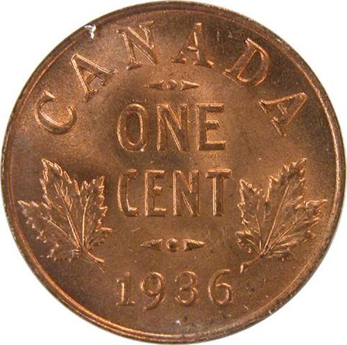 Canada Small Cent 1936 Pittman ICCS MS-64 Red. Full strike, great lustre and over 95% red