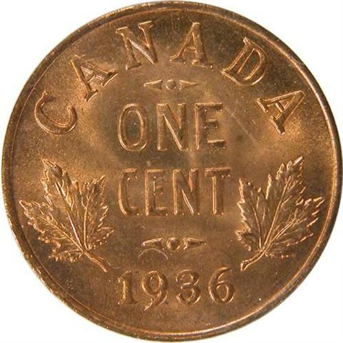 Canada Cent 1936 Pittman, ICCS MS-64 Red. Great lustre and virtually full red