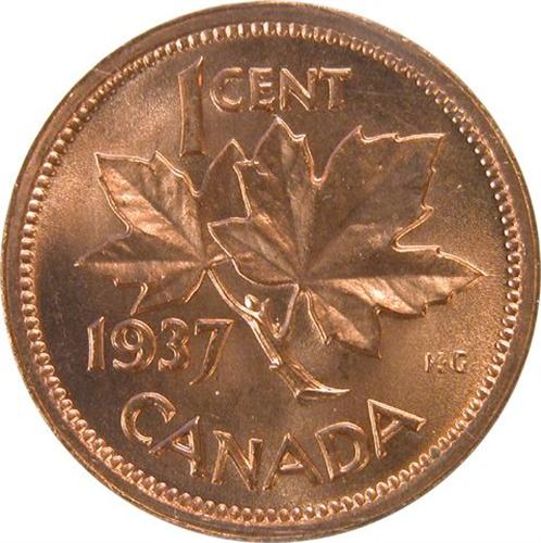 Canada Small Cent 1937 ICCS MS-65 Red. Over 95% red