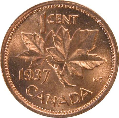 Canada Small Cent 1937 ICCS MS-65 Red. Over 95% red
