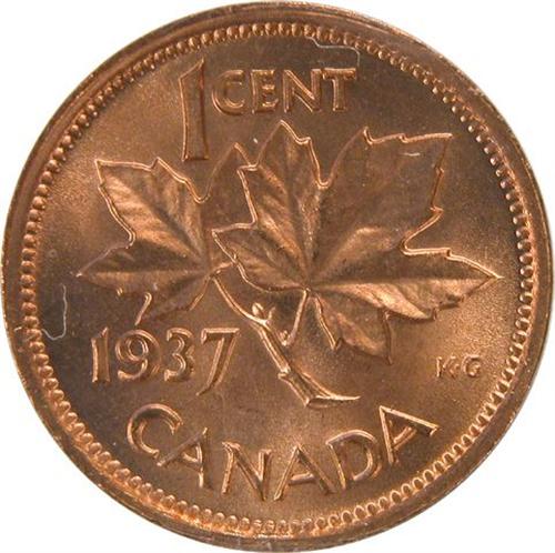 Canada Small Cent 1937 ICCS MS-65 Red. Over 95% red