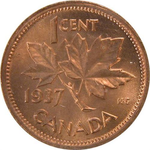 Canada Small Cent 1937 ICCS MS-65 Red. Over 95% red