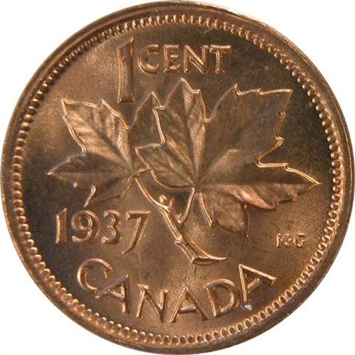 Canada Small Cent 1937 ICCS MS-65 Red. Over 95% red