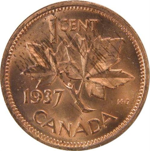 Canada Small Cent 1937 ICCS MS-65 Red. Over 95% red