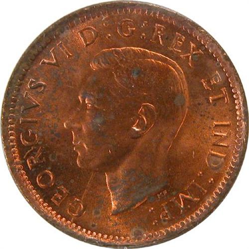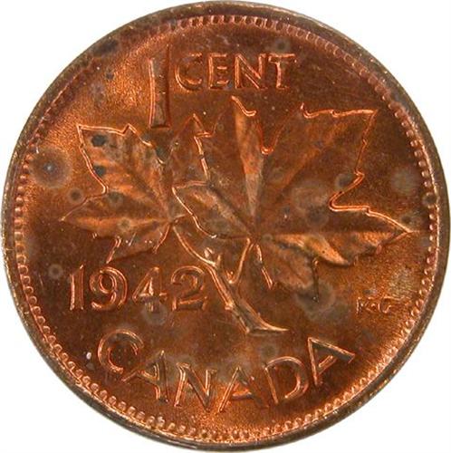 Canada Small Cent 1942 ICCS MS-64 Red. About 80% red