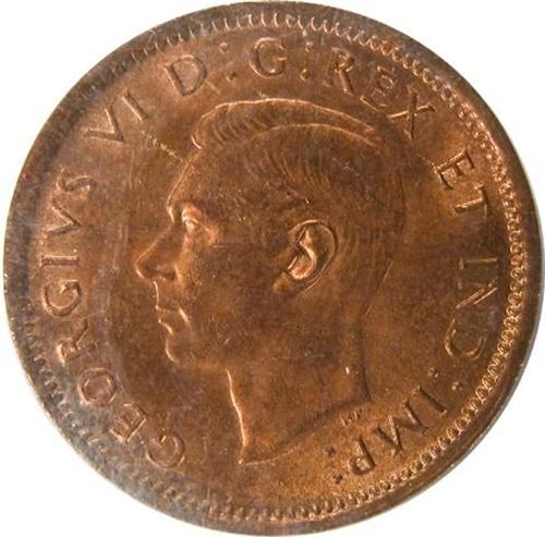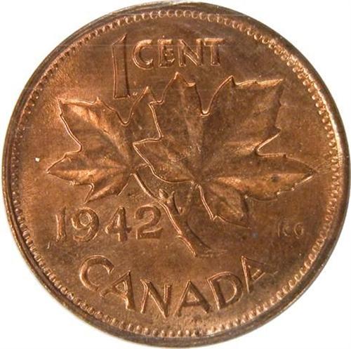 Canada Cent 1942 ICCS MS-64 Red. About 80% red