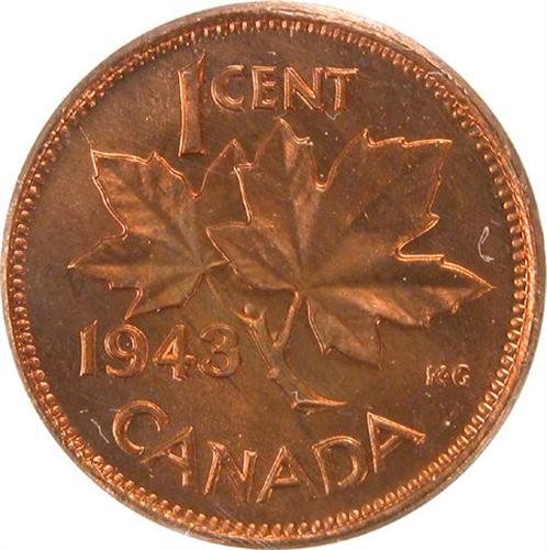 Canada Small Cent 1943 ICCS MS-64 Red. Over 90% red