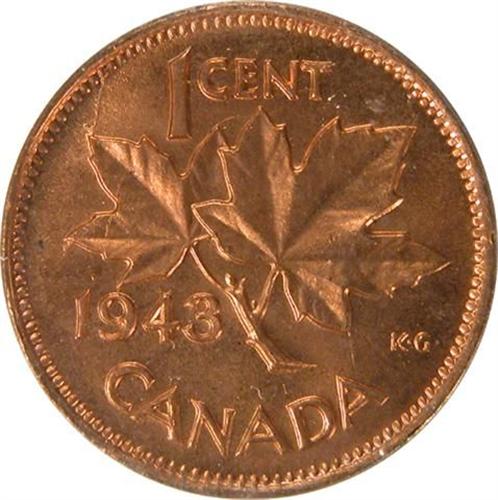 Canada Cent 1943 ICCS MS-64 Red. Over 90% red