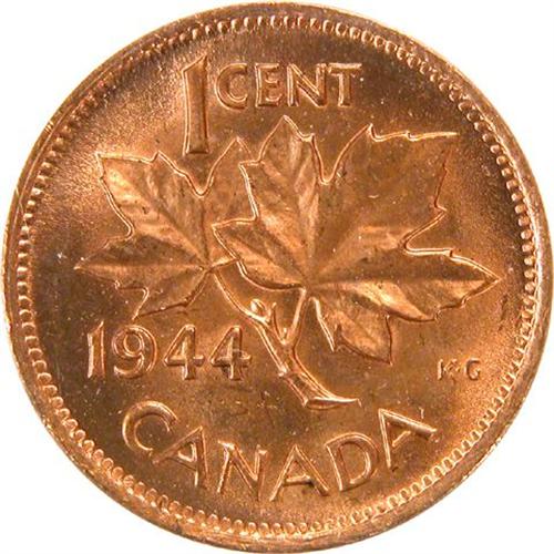 Canada Small Cent 1944 ICCS MS-63 Red Lacquered. Over 90% red protected by professionally applied lacquer