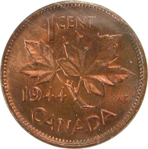 Canada Small Cent 1944 ICCS MS-64 Red and Brown, 60%