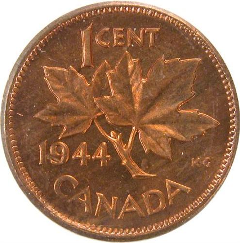 Canada Small Cent 1944 ICCS MS-64 Red. About 80% red