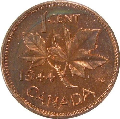 Canada Small Cent 1944 ICCS MS-64 Red. About 80% red