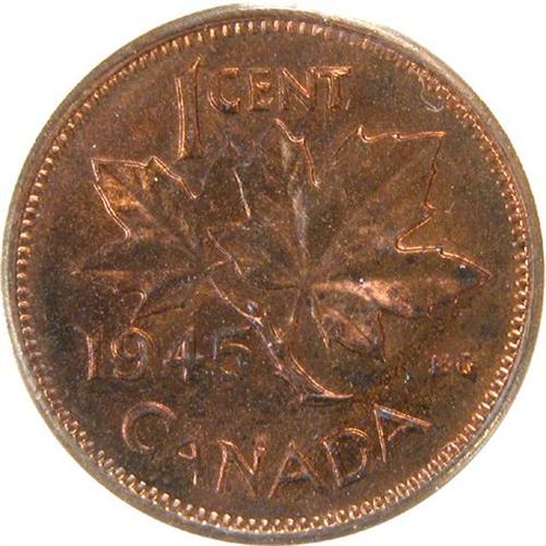 Canada Small Cent 1945 CCCS MS-64 Red. About 70% red with the typical orange-violet cast