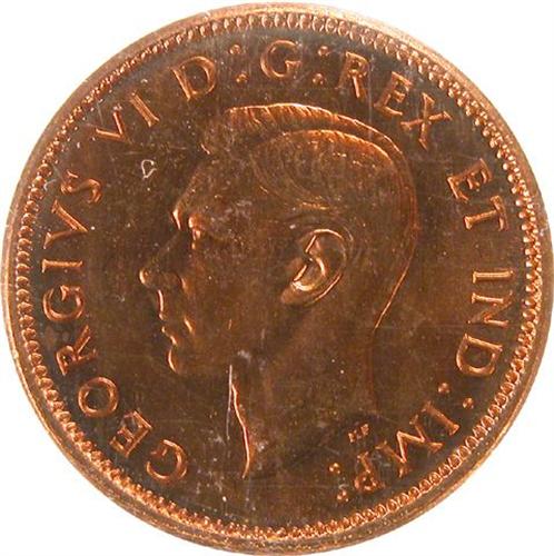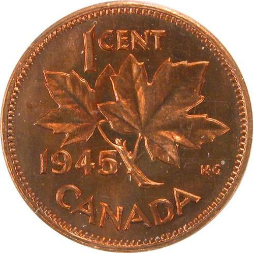 Canada Small Cent 1945 ICCS MS-64 Red. About 85% red with the typical orange-violet cast