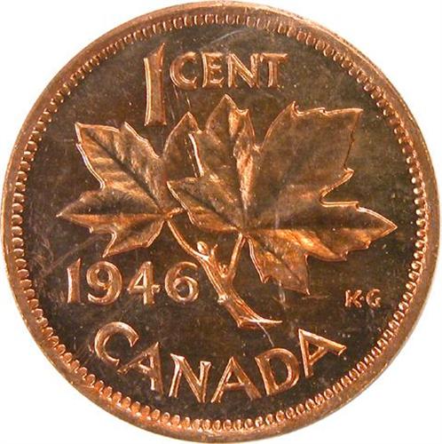 Canada Small Cent 1946 ICCS MS-65 Red. Over 90% red with the typical violet overtones
