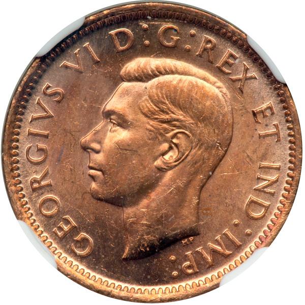Canada. Cent, 1946. KM-32. George VI. NGC graded MS-63 Red, with ICCS tag graded MS-64 Red.