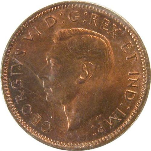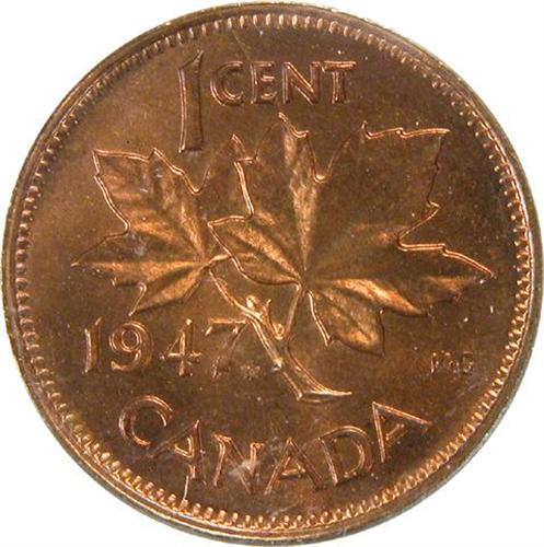 Canada Small Cent 1947 Maple Leaf Blunt 7 ICCS MS-64 Red. The scarcer of the two varieties, about 75% red
