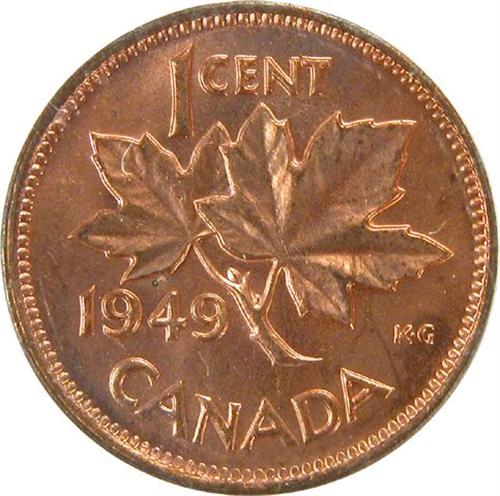 Canada Cent 1949 A off, ICCS MS-65 Red