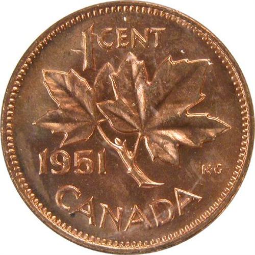 Canada Small Cent 1951 ICCS MS-64 Red. Over 85% red