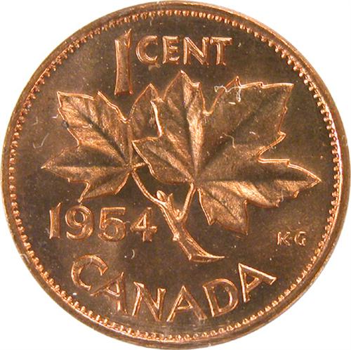 Canada Small Cent 1954 Shoulder Fold ICCS MS-65 Red. A very nice example that is virtually full red