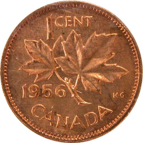 Canada Small Cent 1956 ICCS MS-65 Red. About 95% red