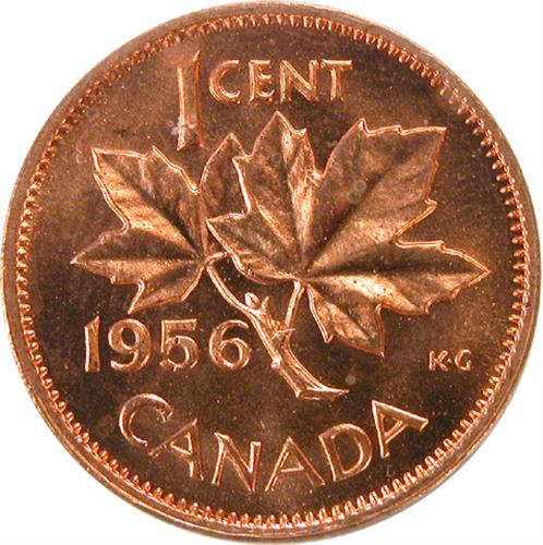 Canada Small Cent 1956 ICCS MS-65 Red. About 95% red