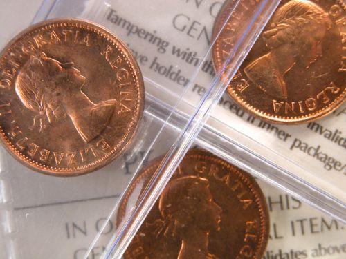 Canada Small Cent 1957, 1958 and 1959, all ICCS MS-65 Red. Ranging from 85% to 95% red