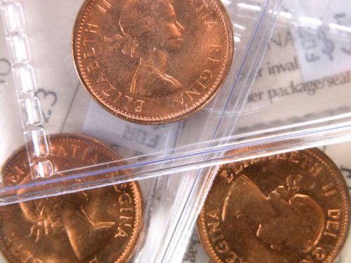 Canada Small Cent 1957, 1959 and 1964, all ICCS MS-65 Red and all over 90% red