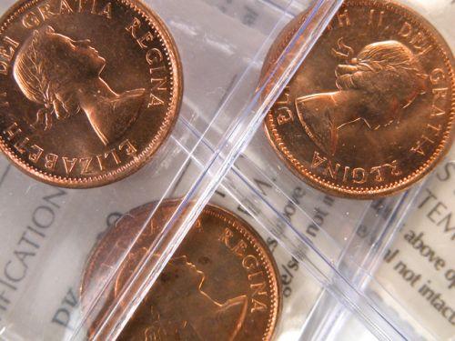 Canada Small Cent 1958, 1959 and 1960, all ICCS MS-65 Red and all over 95% red