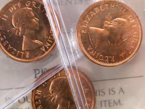Canada Small Cent 1959, 1960 and 1961, all ICCS MS-65 Red and all over 95% red