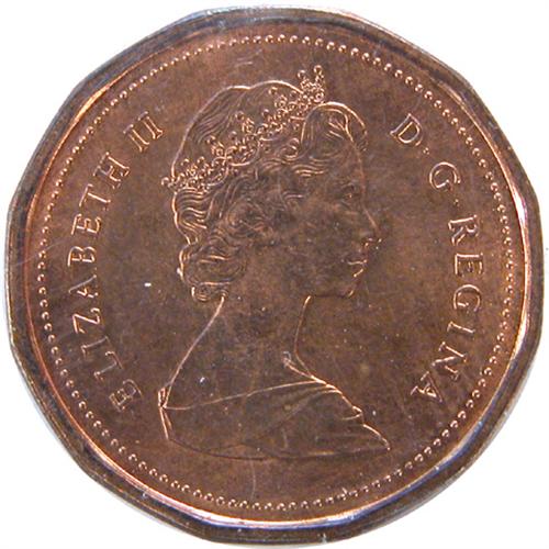 Canada Small Cent 1985 Pointed 5 ICCS MS-64 Red. 80% red