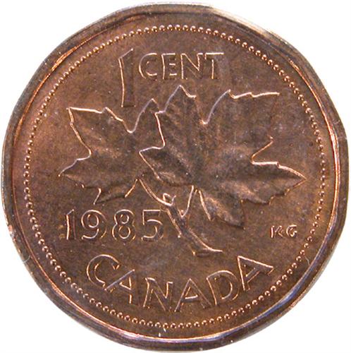 Canada Cent 1985 Ptd 5, ICCS MS-64 Red