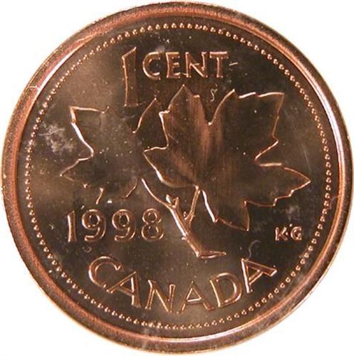 Canada Cent 1998W ICCS MS-67 Red, near full red