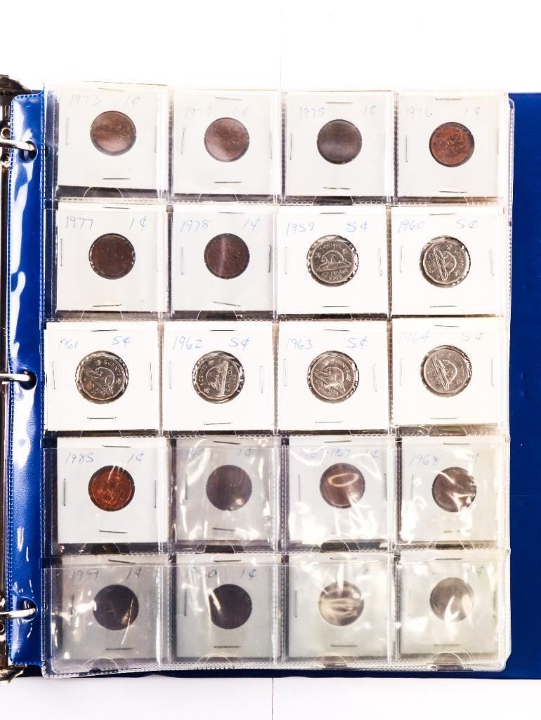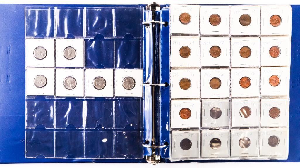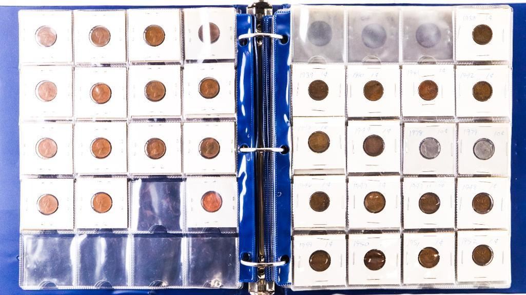Canada Coin Collection - Approx. 114 Coins, Mainly Nickels, 1940's One Cent etc, Binder Lot (Blue)