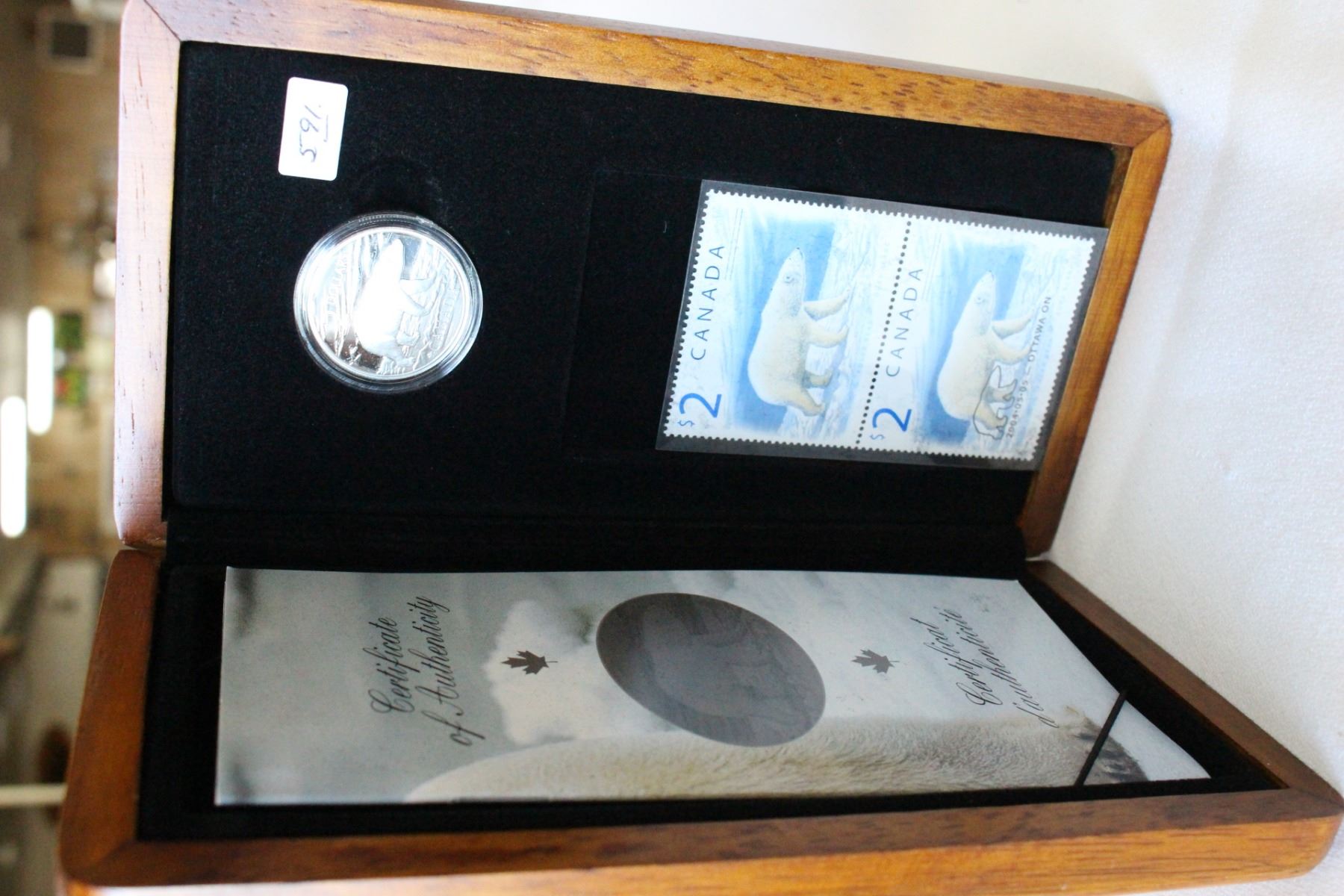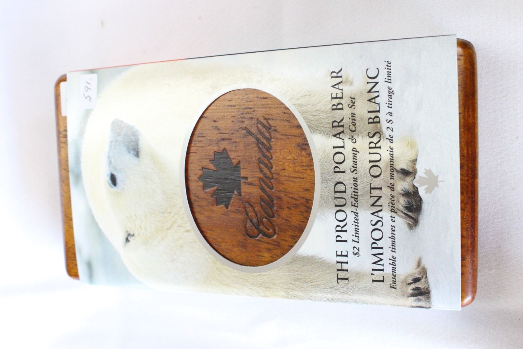 2004, Two Dollar Coin (.925% Silver); (2) 2 Dollar Stamps with COA; "The Proud Polar Bear", In a Wooden Box and Sleeve