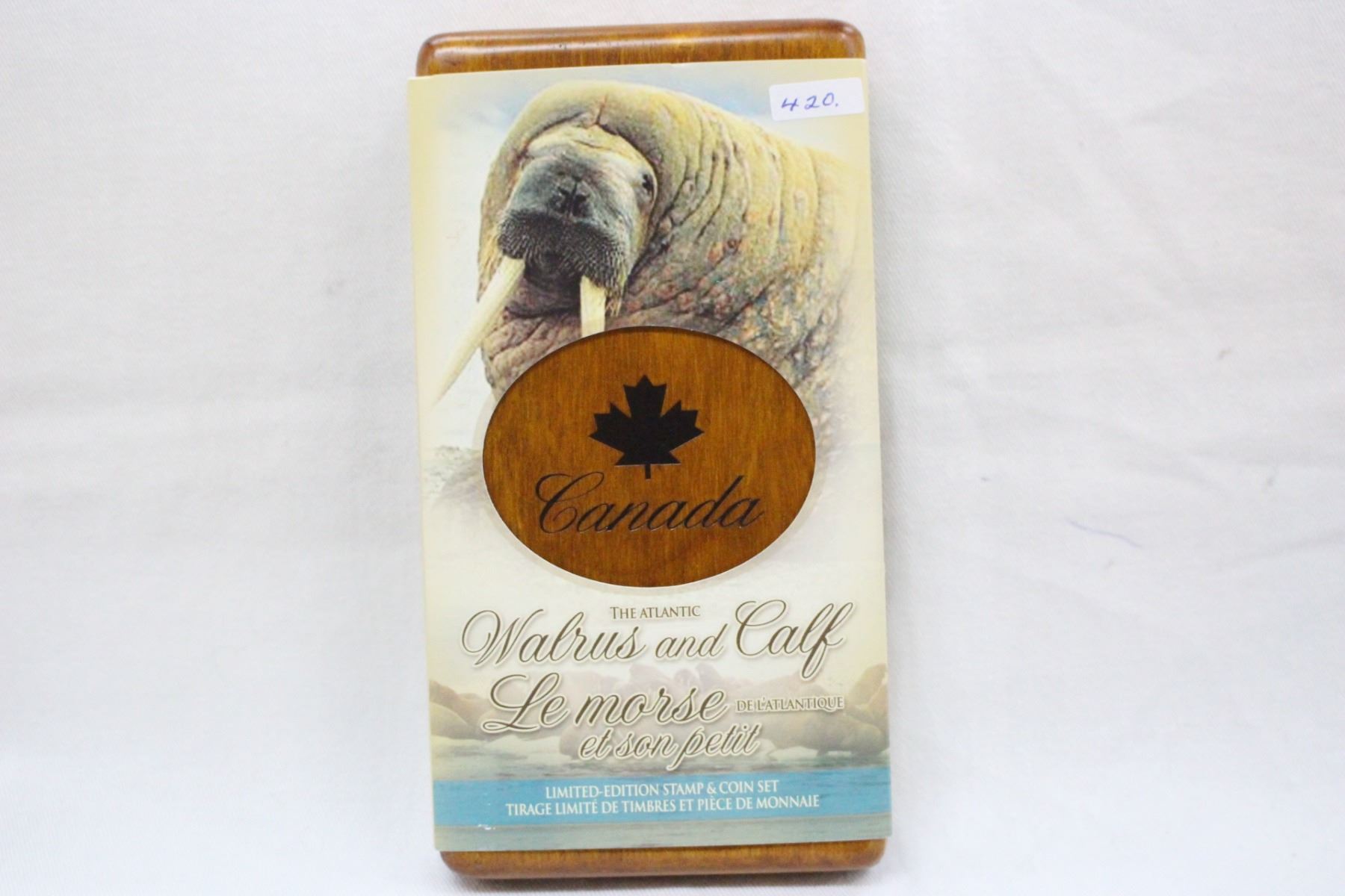 2005; .999 Silver; $5 Coin, (2)$1 Stamps; In a Wooden Case & Sleeve