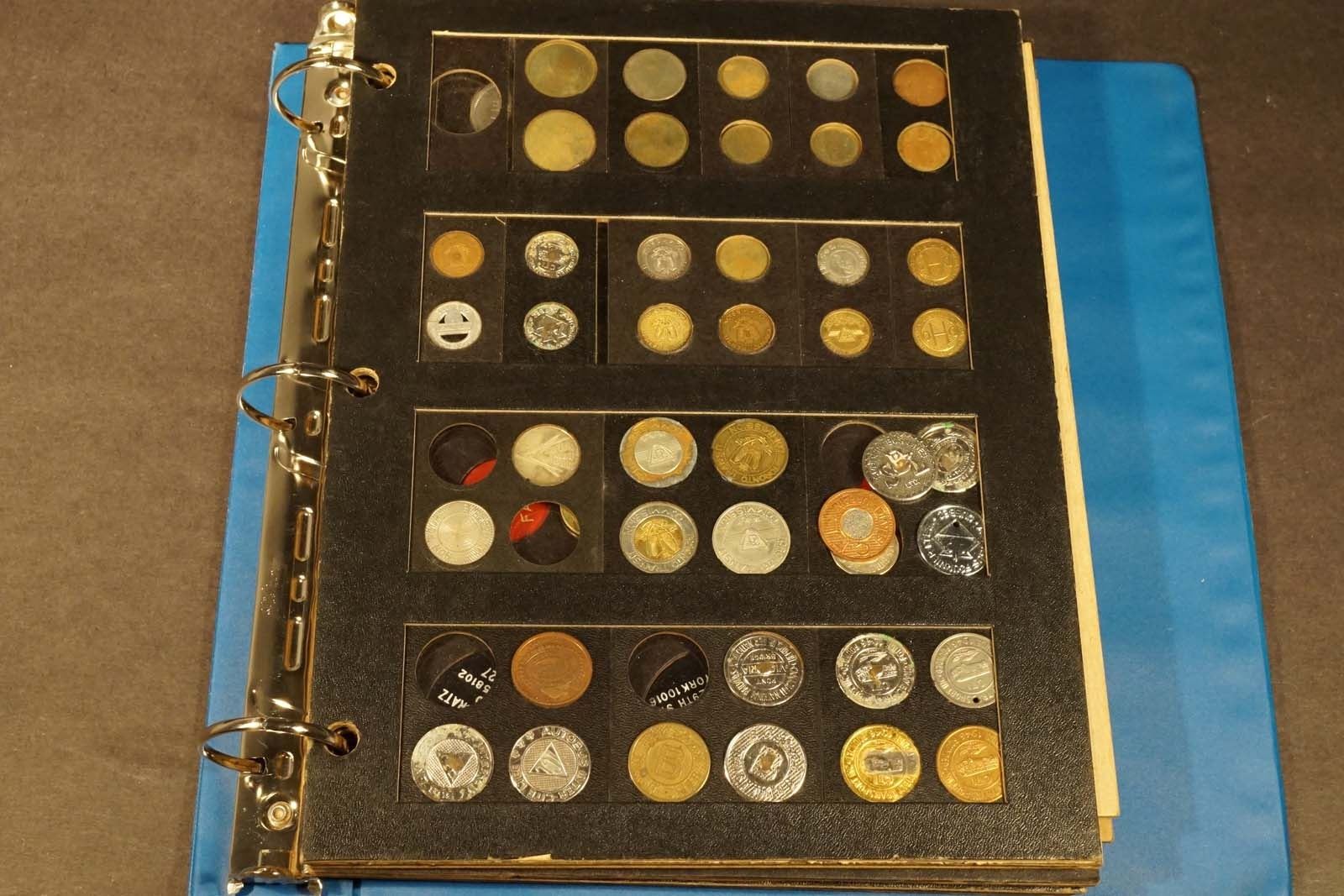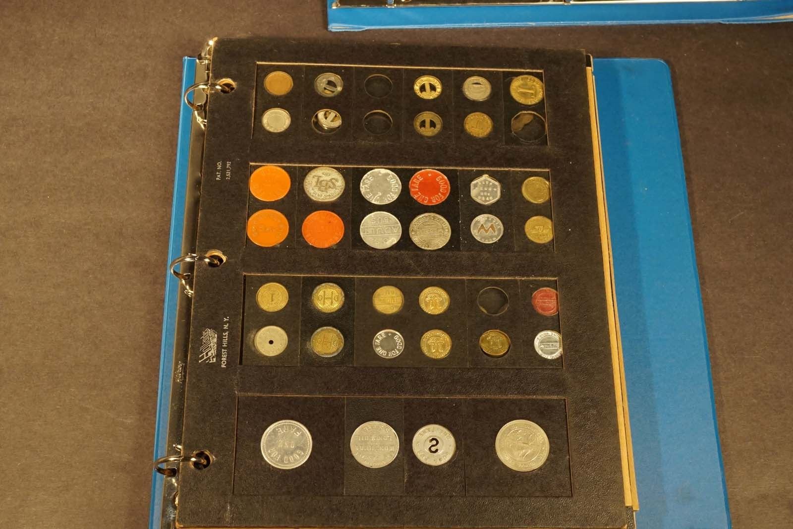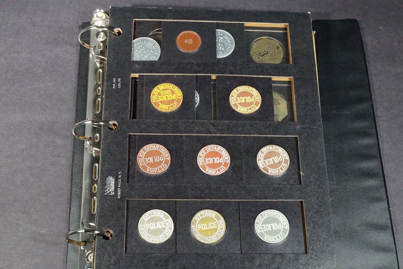Collection antiques Canada transportation tokens, parking, bus and others well displayed in 3 albums