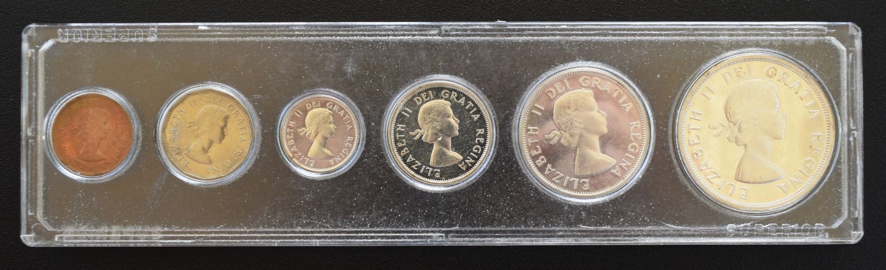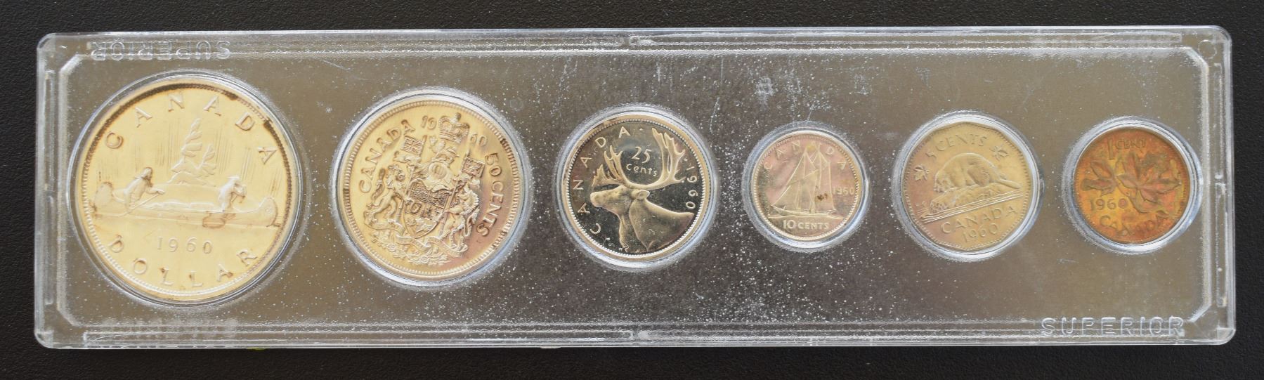 Canada, Display Holder Set, Year 1960 from Penny to Dollar Silver ASW Oz 1.1094 All Mint State
