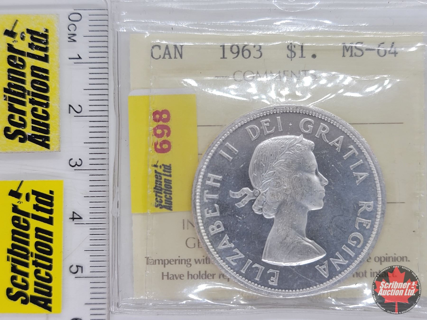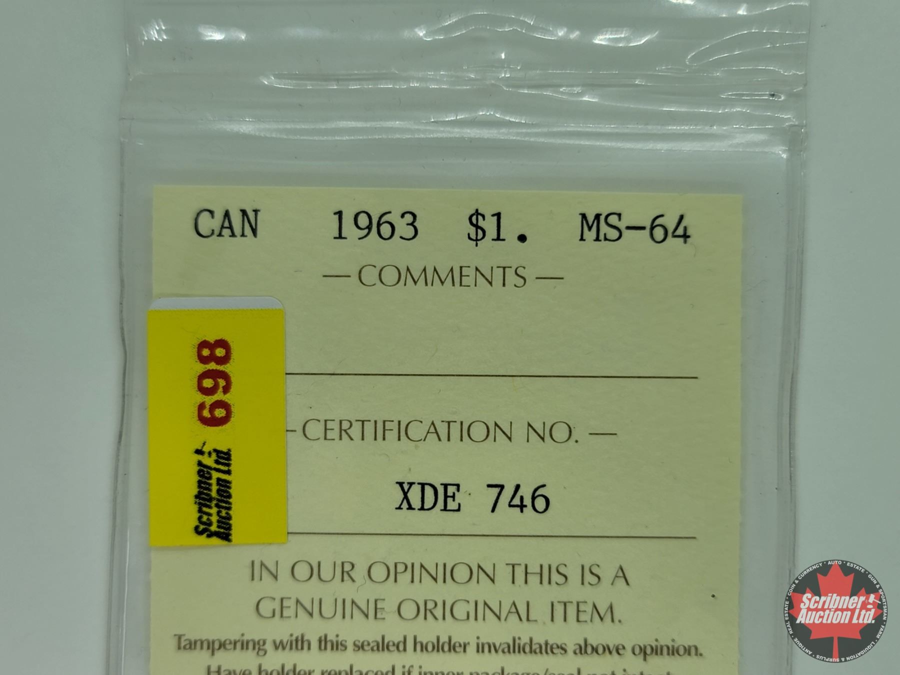 Canada Dollar 1963 (ICCS Cert : MS-64) (SEE PICS!)